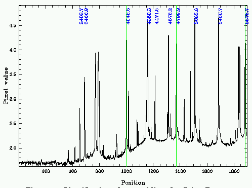 | Function: | Uses a focus exposure with shifting the charge on the detector to get a multiple image of the longslit for different wavelength of the Etalon around a calibration line. Follow the instructions on the screen. Use CALIB/ETALON to analyse the exposure. |