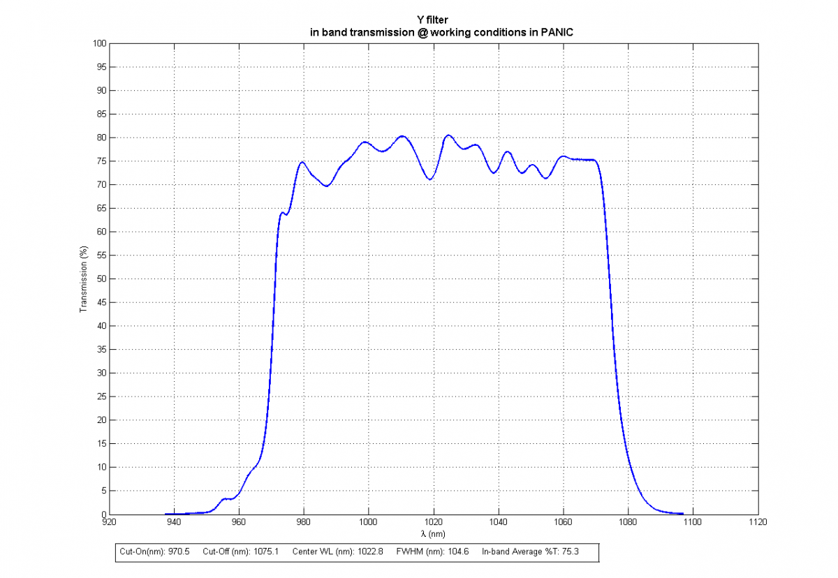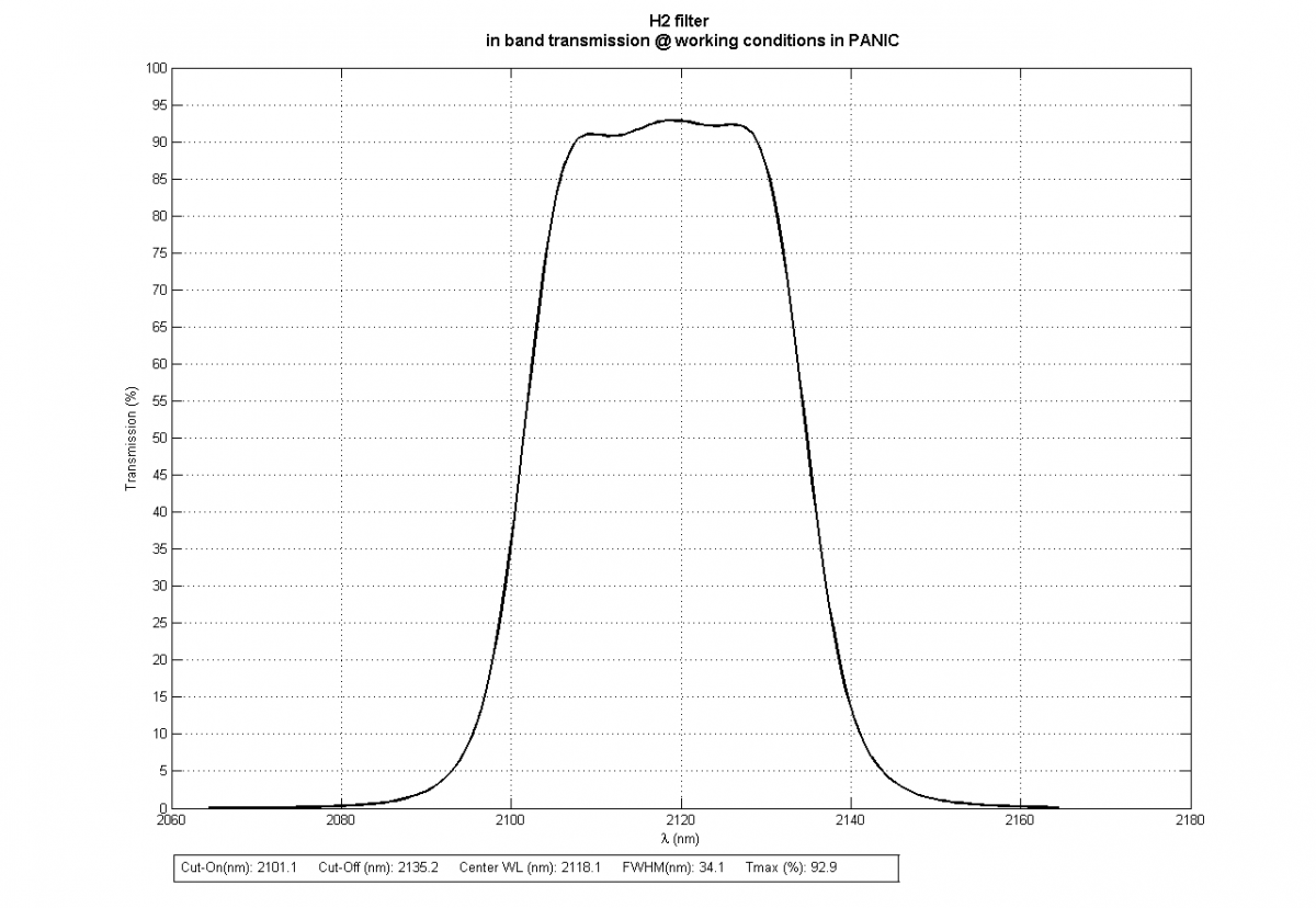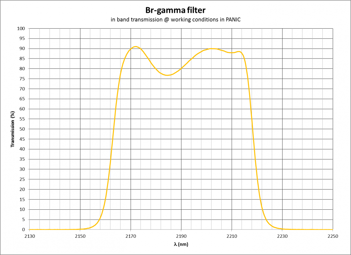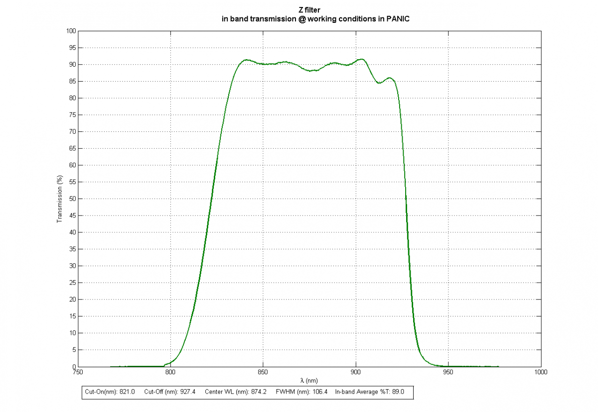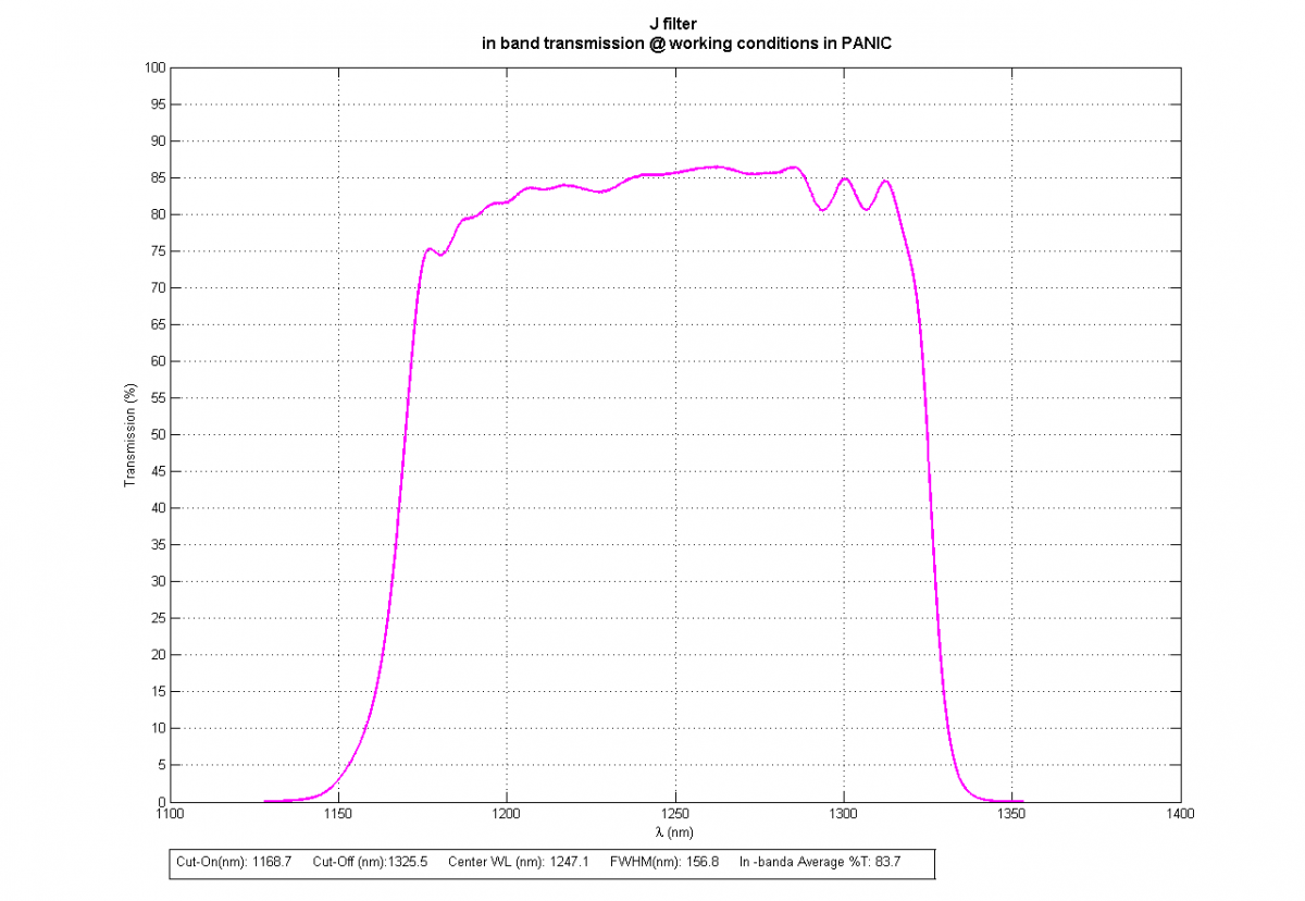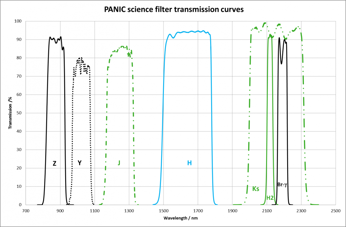 • PANIC has four filter wheels, with capacity of up to 15 filters. There are currently 7 filters installed and 8 empty filter positions.