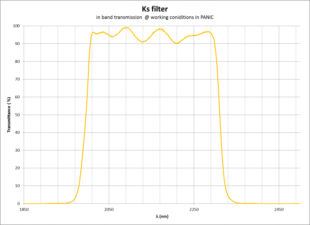 • PANIC has four filter wheels, with capacity up to 15 filters. There are currently 7 filters installed, and 8 empty filter's positions.