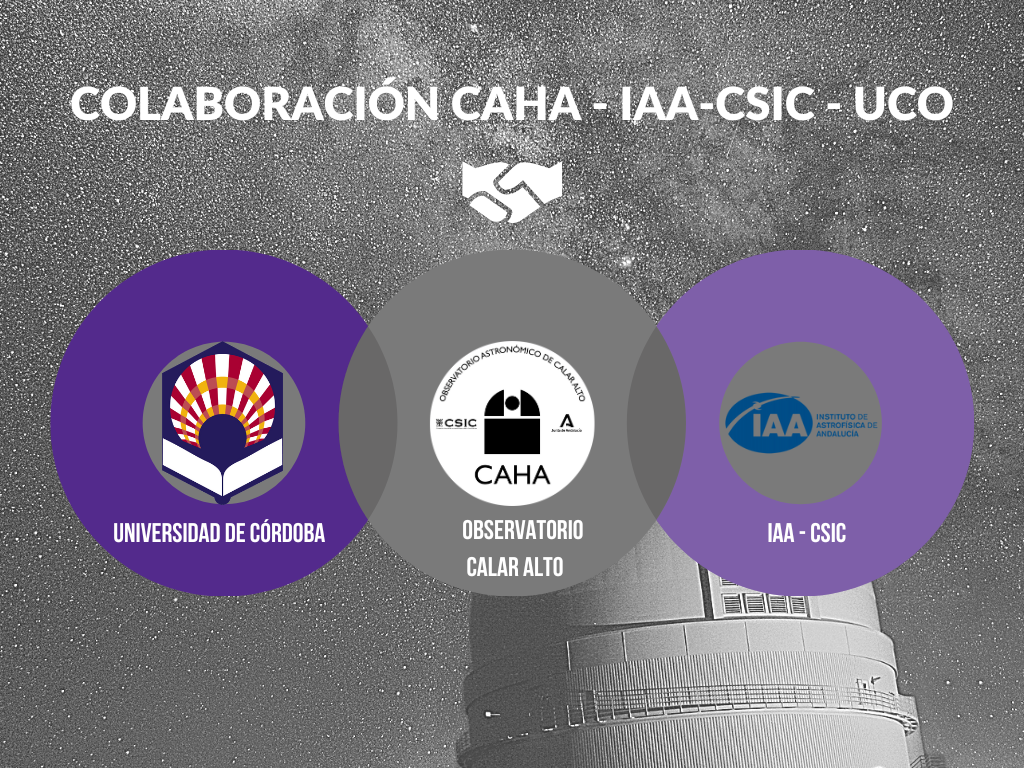 La Universidad de Córdoba (UCO), la agencia estatal CSIC - a través del Instituto de Astrofísica de Andalucía, IAA-CSIC, en Granada - y el Centro Astronómico Hispano en Andalucía (CAHA) de Calar Alto, han firmado un protocolo general de actuación para impulsar un plan conjunto de actividades de carácter académico, científico-técnico y social. Se trata de fomentar la divulgación y el desarrollo de la Astronomía y disciplinas afines. El observatorio de Calar Alto confirma así su compromiso con la difusión de la Astronomía y de la Astrofísica en la comunidad universitaria y la sociedad andaluza.