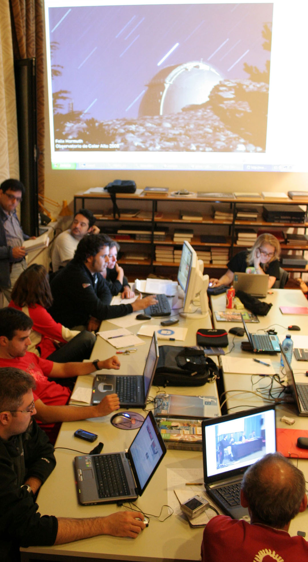 Course session Todos los participantes han sido astrónomos aficionados cualificados, seleccionados de acuerdo con su experiencia previa y teniendo en cuenta los telescopios y equipos de que disponen en sus hogares o en sus asociaciones. También se valoró su capacidad para difundir los conocimientos adquiridos a través de las actividades de sus organizaciones, o en centros de divulgación.